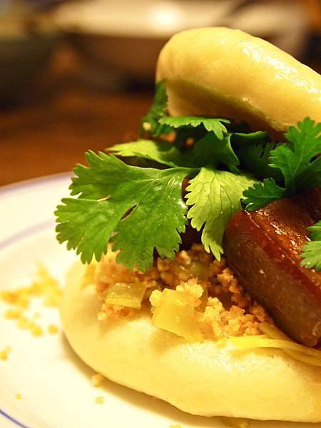 刈包裡包了酸菜、紅燒肉、香菜還有那少不了的花生糖粉。