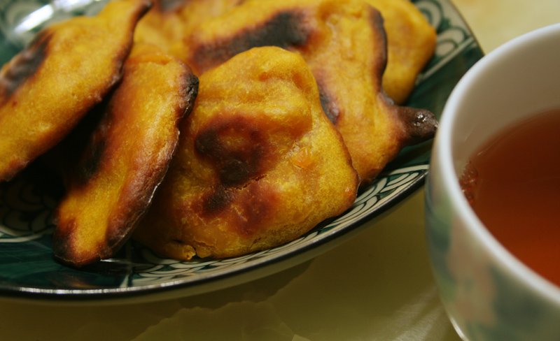 咬一口南瓜餅啜一口茶,真棒!想要更濃郁的口感,可以在餅上塗上打發的奶油或mascarpone也是不錯的選擇。建議趁餅還溫熱時食用風味更好。